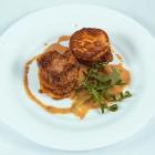 6.Горячий кордон-блю перед подачей разрезать пополам. Блюдо в стиле фьюжн, конечно, калорийное, но очень вкусное! И овощи к тому же помогают пищеварению. Советуем готовить кордон-блю к праздничному обеду.