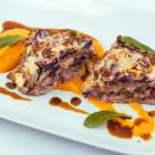 6.Мясо подать, порезав ломтиками и полив соусом, с печеным картофелем. Это блюдо доказывает, что даже дуэт мяса и картофеля может быть очень вкусным и оригинальным.